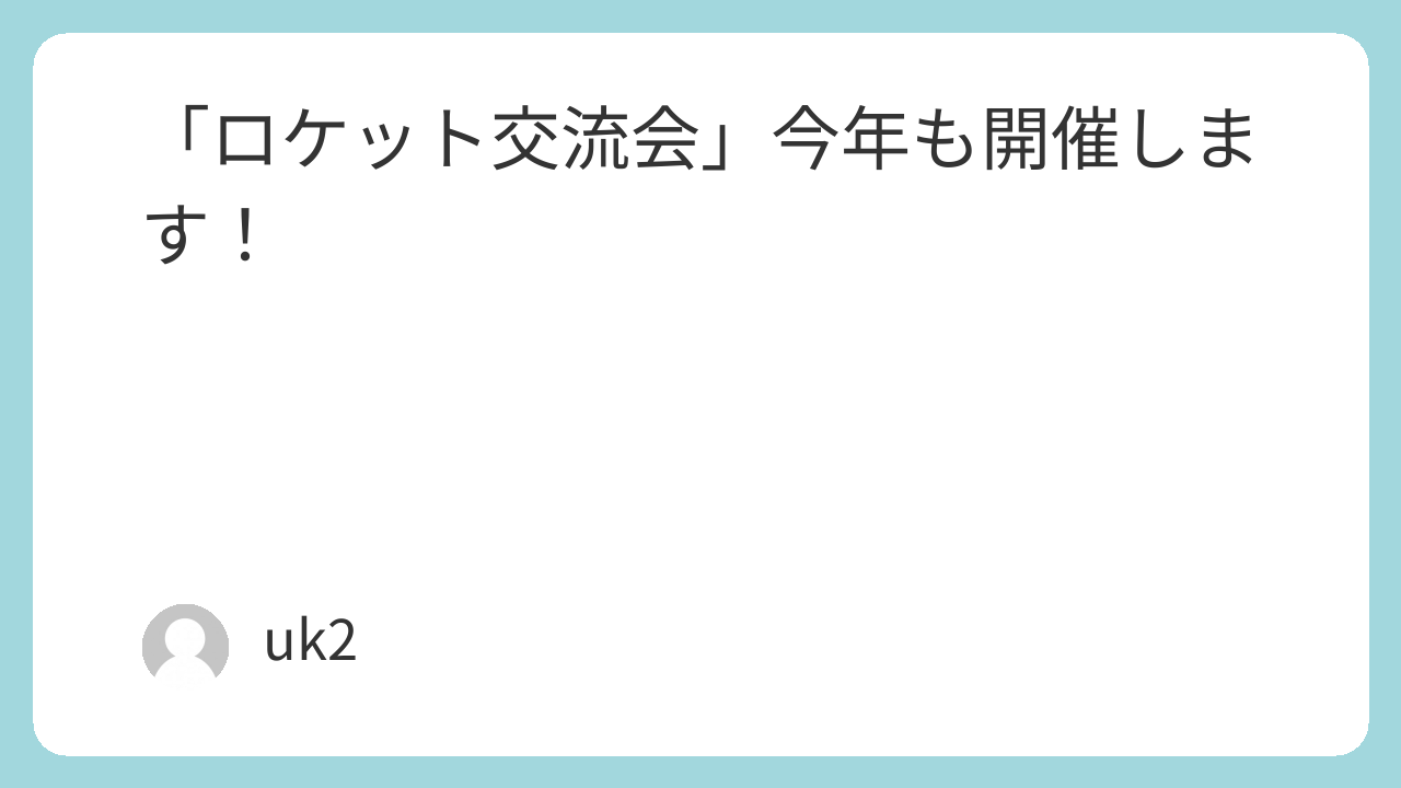 筆者が所属しているNPO法人有人ロケット研究会では、日本のロケット開発団体の交流と成果発表の場を目的として、毎年に「ロケット交流会」というイベントを開催しています。